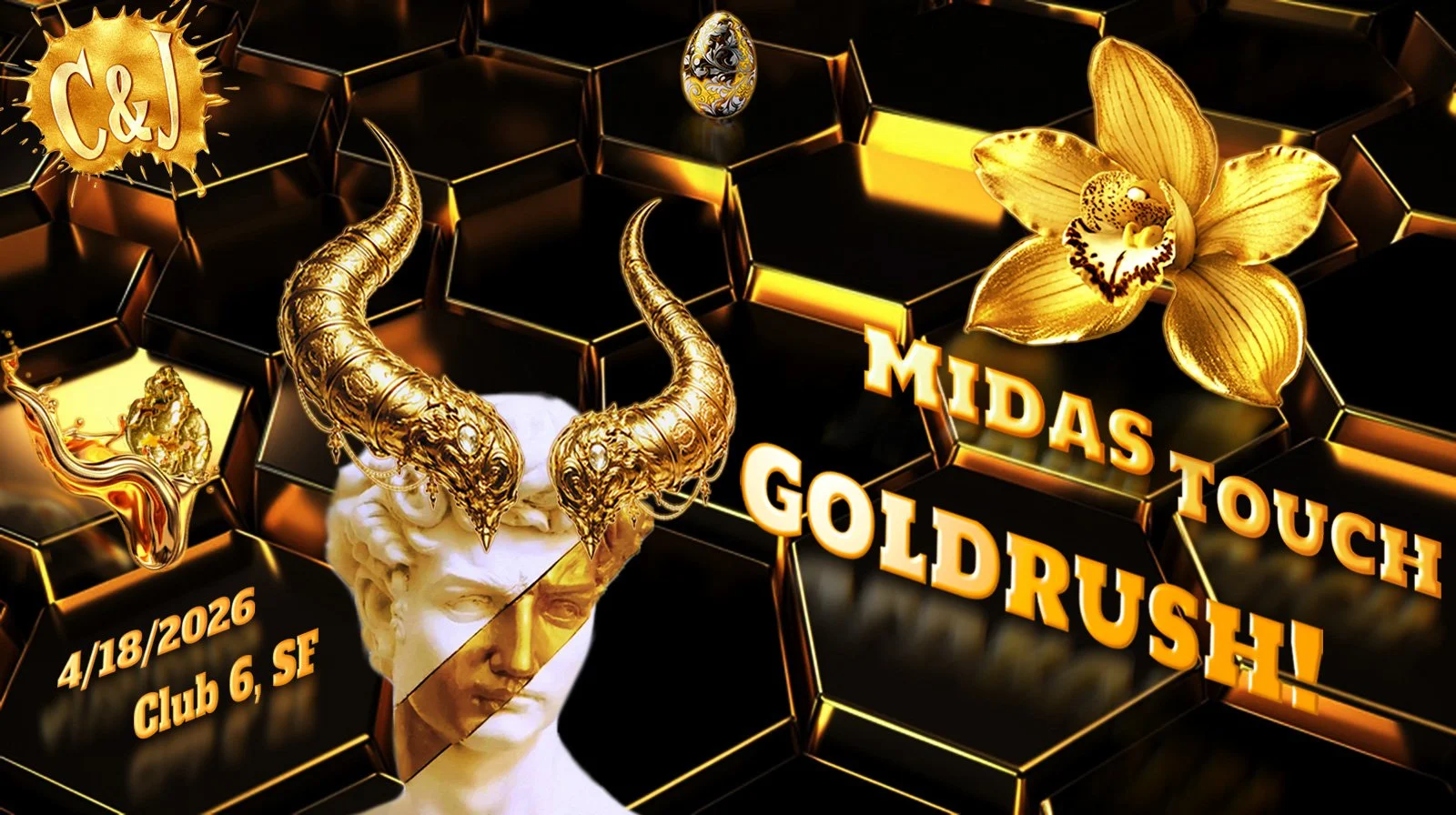 At Midas Touch: Goldrush we gather to celebrate the alchemy that occurs when queer bodies, creativity, and connection collide. When we show up for each other, the ordinary transforms into something luminous. For one night, the dancefloor becomes a bootie-shaking goldmine - bodies shimmer. Sweat glows. Energy compounds and explodes in gilded fireworks.